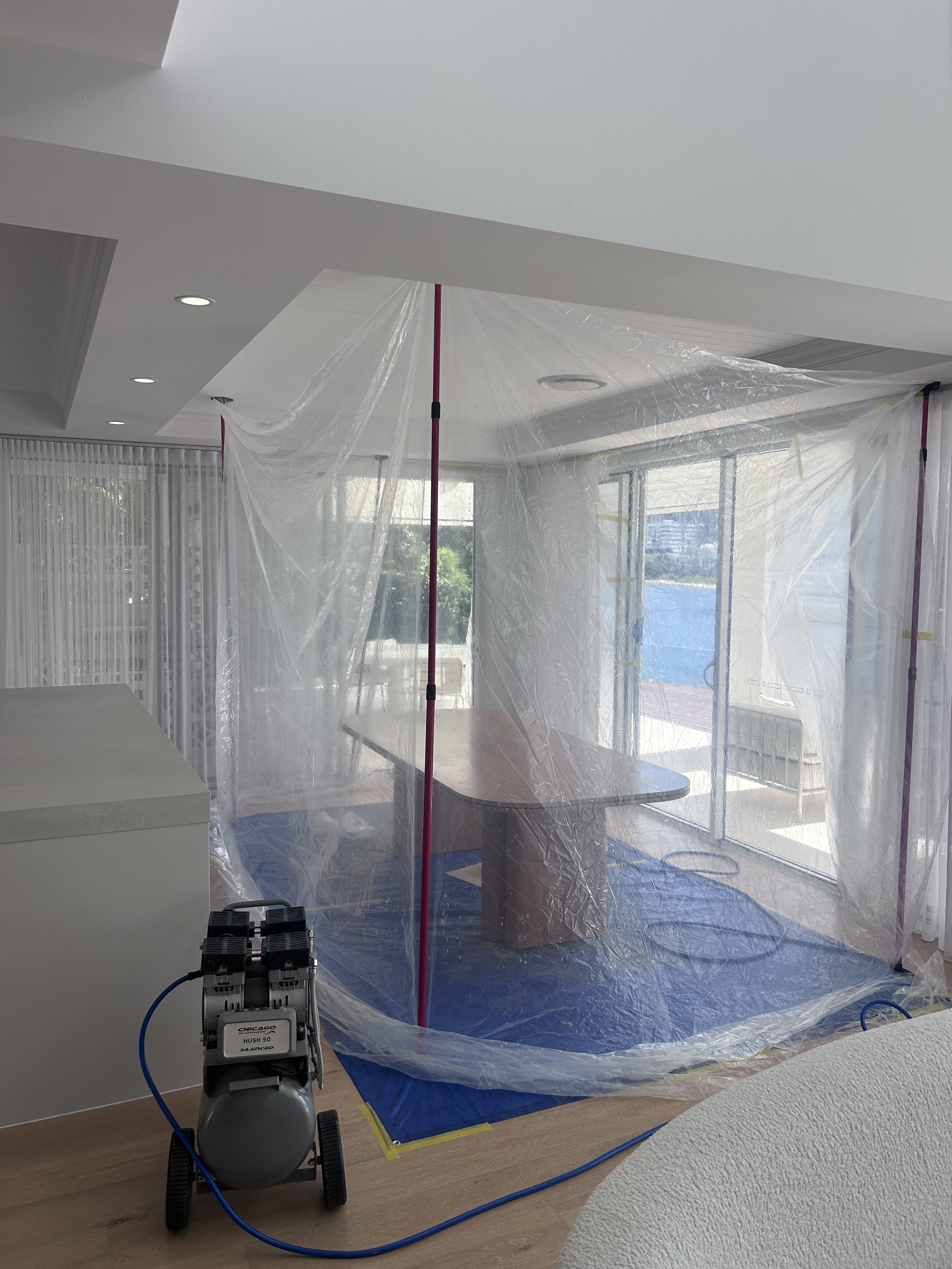 We clean, sand and prep surfaces properly, repair any minor damage, and mask surrounding areas to keep dust and overspray contained.